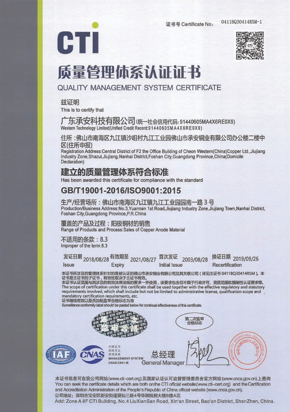 GB/T19001-2016/ISO9001:2015(广东承安科技有限公司)