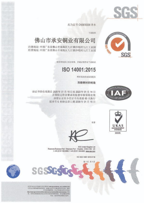 ISO14001:2015(佛山市承安集团股份有限公司)