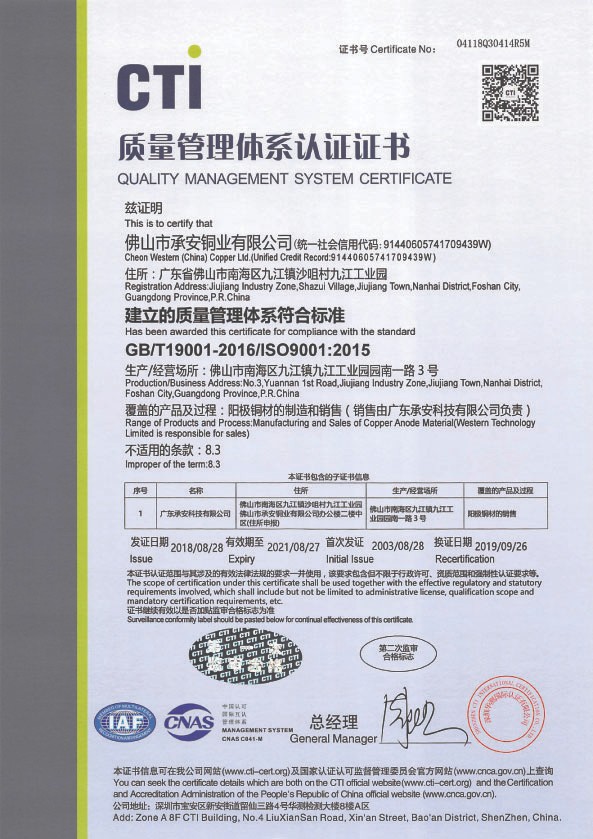 GB/T19001-2016/ISO9001:2015(佛山市承安集团股份有限公司)