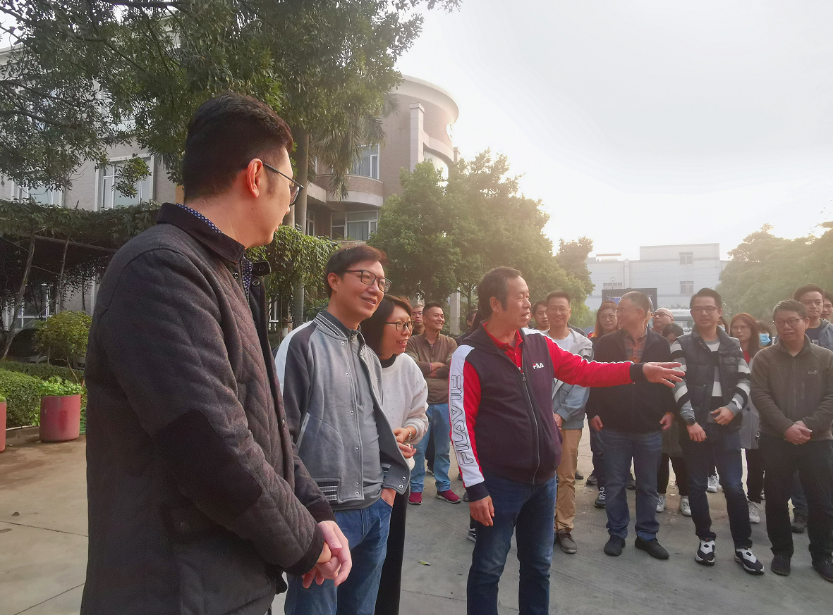 “威士顿金球”揭球仪式结束后,承安的董事长周腾芳先生、总经理周建新先生、副总经理岑国明先生带头,承安的家人们进行了绕球一周、能量互动的欢乐小仪式。