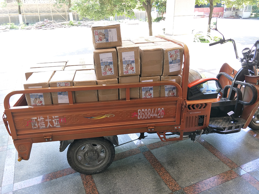 6月26日下午,快递哥乐呵呵的载着满满的一车子红枣来到了公司。